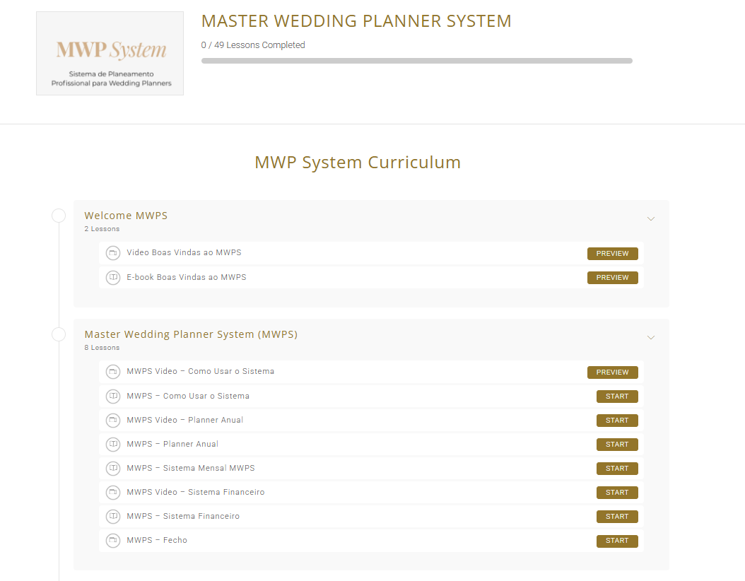 O MWPS (Master Wedding Planner System) não é um curso tradicional. É um sistema de trabalho criado para apoiar o teu dia a dia como wedding planner.