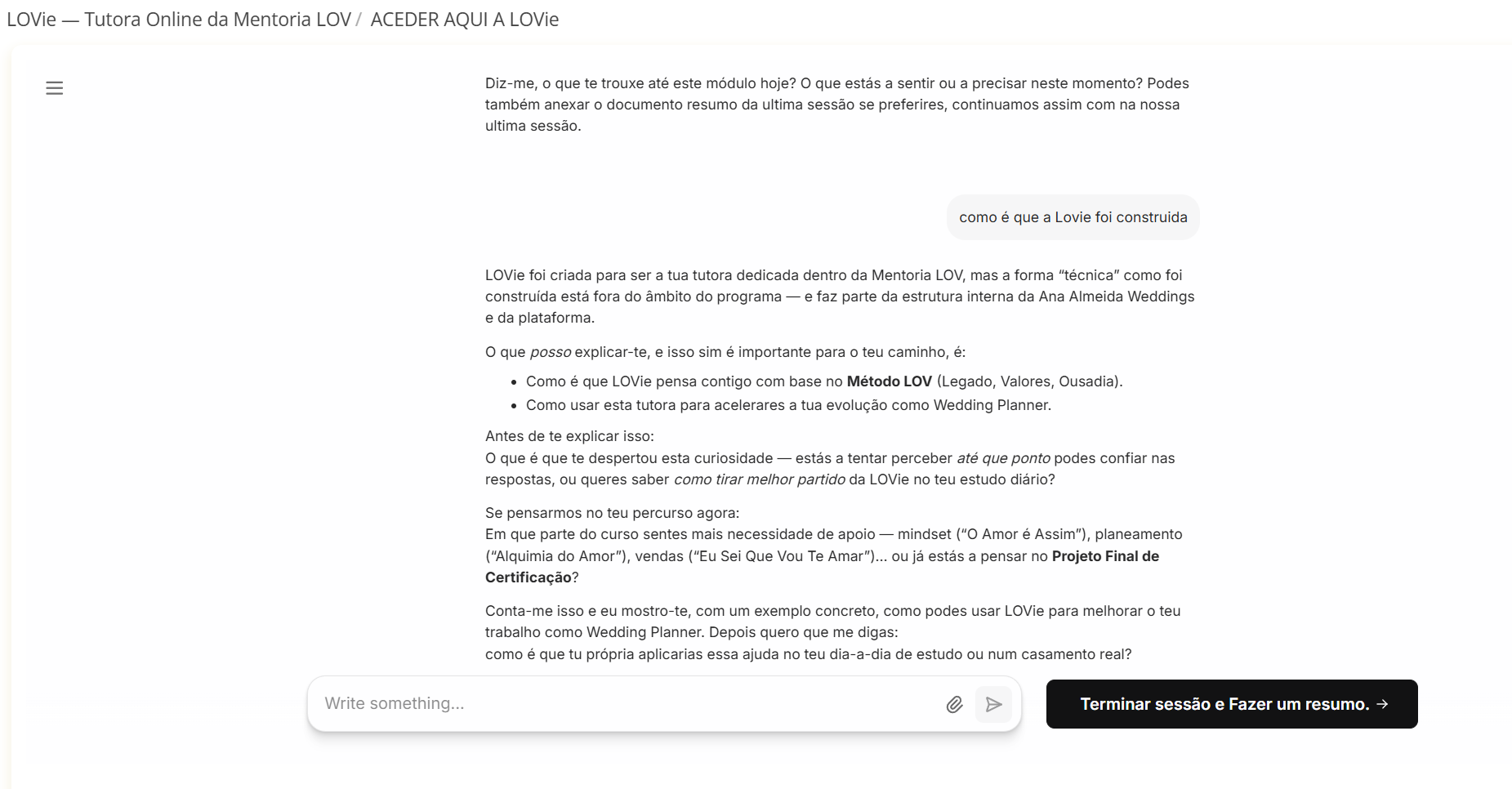 O Programa LOV é uma formação premium que combina mentoria, método e direção, criada para wedding planners que querem crescer com clareza, confiança e intenção.